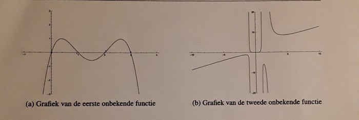 Ik begrijp niet zo goed hoe we een functievoorschrift moeten bepalen die alle karakteristieken (nulpunten, assymptiten, ... ) heeft van een gegeven grafiek. In bijlage heb ik een afbeelding toegevoegd van twee grafieken, waarvan we de functievoorschrift moeten bepalen.