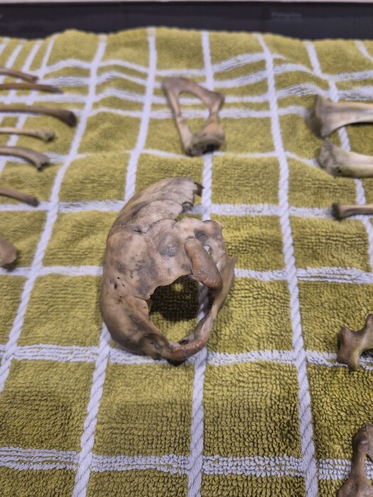 Goed dat je deze stukken hebt ingezameld en er meer over wil te weten komen. Ik zou graag wat meer uitleg geven, maar eerlijk gezegd, kan ik niet genoeg details zien. Het zou goed zijn mocht je wat meer foto's nemen van het schedeltje, maar ook van de andere botten die je vond. En, zeer belangrijk: het is best er een schaal bij te doen, een meetlatje ofzo. Dan hebben we meteen een idee van de grootte van de botten.