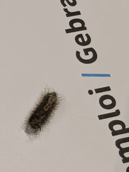 Dit ziet eruit als de gedroogde huid van de larve van een tapijtkever (Anthrenus verbasci) of de museumkever (Anthrenus museorum) of een verwant uit de familie van de spekkevers (Dermestidae).