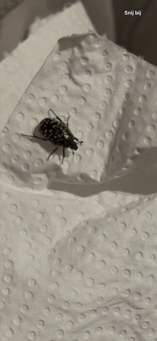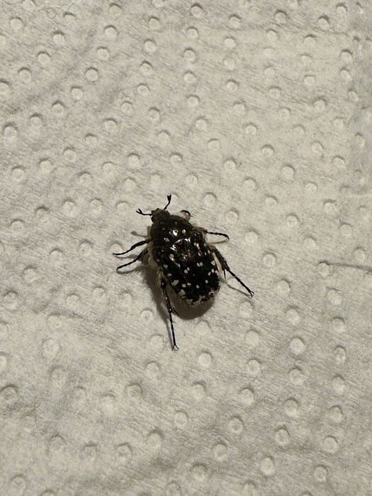 Deze kever is vermoedelijk de rouwende gouden tor (Oxythyrea funesta). Deze soort komt vrij algemeen voor in Belgiƫ en vormt binnenshuis geen plaag of pest. De volwassen kevers overwinteren en hebben mogelijks binnen een beschut plekje gevonden. Nu de lente er aan komt, worden ze weer actief. Het beste is om de diertjes gewoon buiten te zetten.